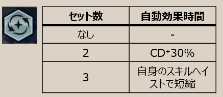 - セット効果 完全自動化 で発動回数が増える(2セット-30%、3セットはヘイスト連動)