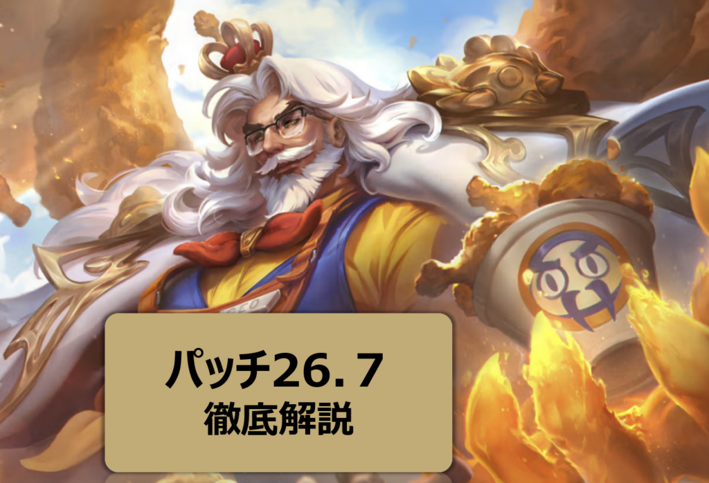みなさんこんにちは!パッチ26.7がやってきました。今回のアップデートは、特定のチャンピオンだけでなく、**「サポートアイテムの仕様変更」**がゲームの根幹を揺るがす大きな内容となっています。 注目すべき変更点と、それによって変わる「勝ち方(立ち...