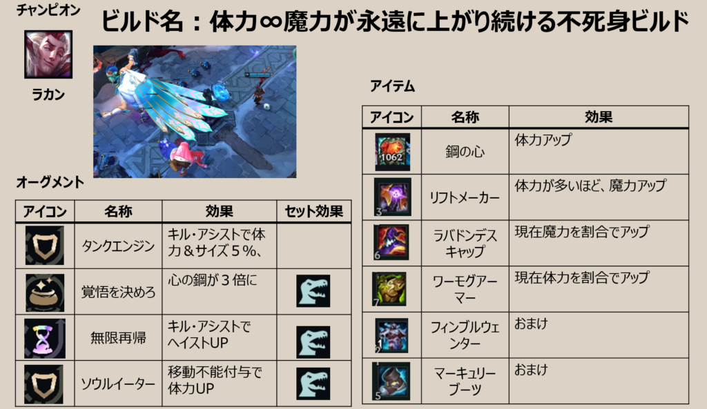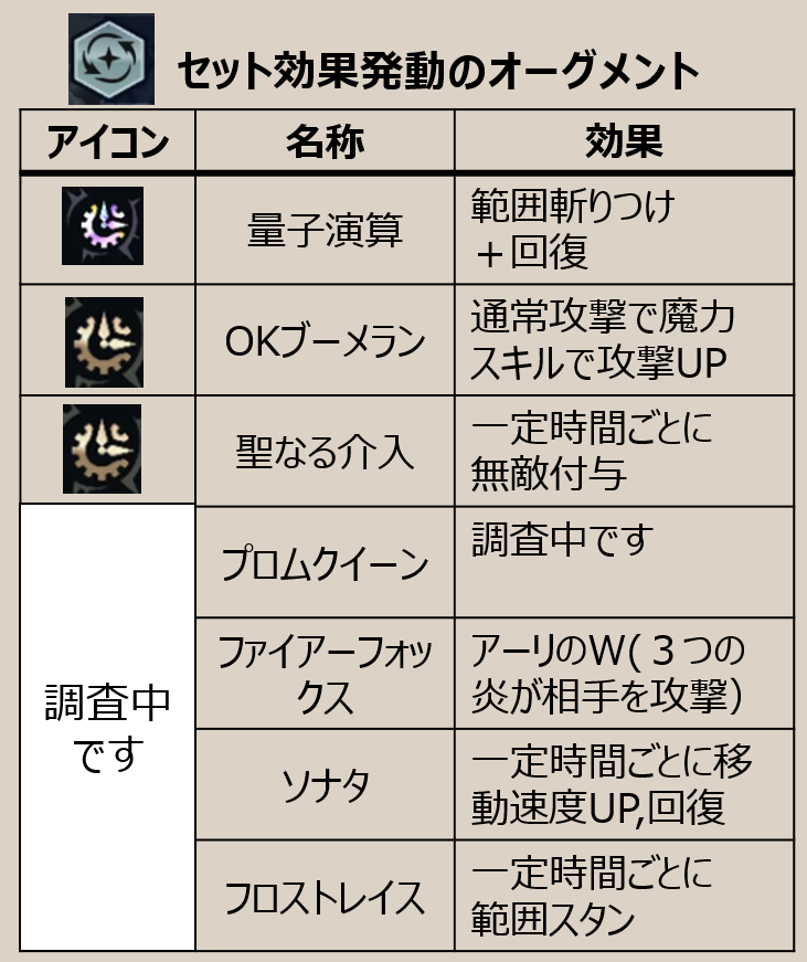 26/3/22 セット効果を追記,オーグメントの記述をティア形式に変更+オーグメント追記。即位の解説動画をアップしました。