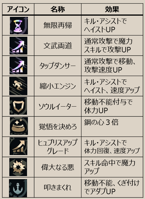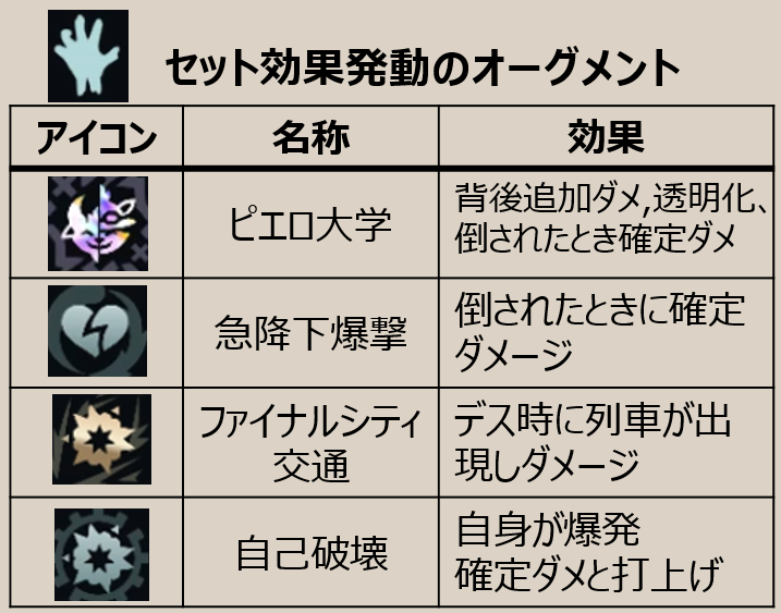 | アイコン | オーグメント名 | 効果概要 | 攻略メモ |