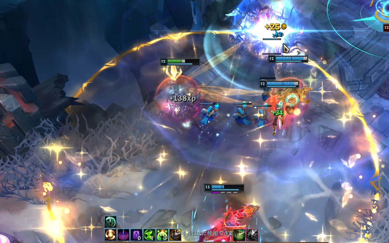 ![]() | 信ずる者の加護 | 味方に回復orシールドをすると数秒間「祝福を付与」し味方がが与えるダメージに応じて、スタック。50スタックで衝撃はの攻撃を与え体力低下のチャンプにとどめを刺す | スタックは維持されるが、効果時間が短い、味方が攻撃してくれないとスタック貯まらない(AA1発1スタック、スキル一発1スタックっぽいです)、衝撃はも弱い。。で正直使えない。。カルマだと周囲全員にばら撒けるが、使っていてもうーん微妙という感じ。。衝撃波は気持ちいいです。もっと発動スタックが下がったら強そう。。![]() |