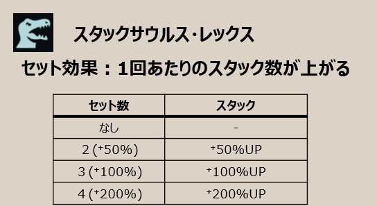 セット効果のスタックサウルスレックスも+3が発動し、オーグメント効果が⁺100%アップです。