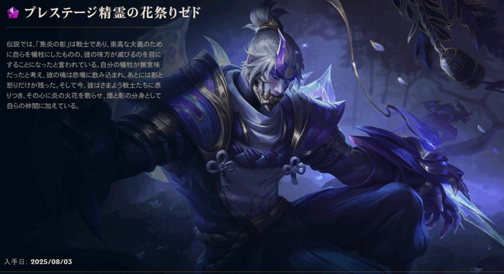 ゼド使いではないですが、このスキンカッコイイです。(2025年Season2Act2のイベントパス報酬)